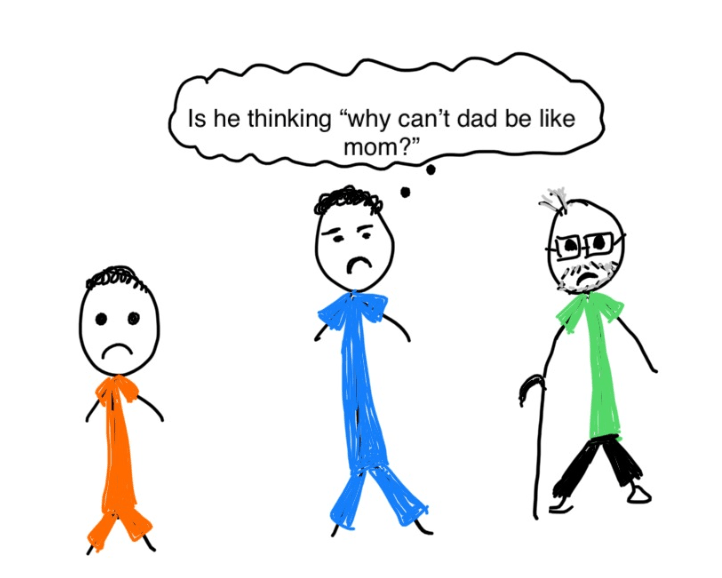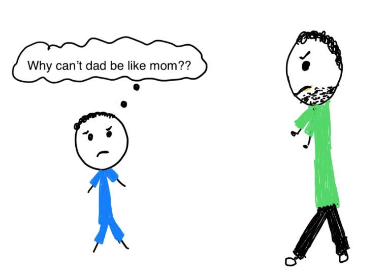 Maybe thinking, Why can’t Dad be like Mom?